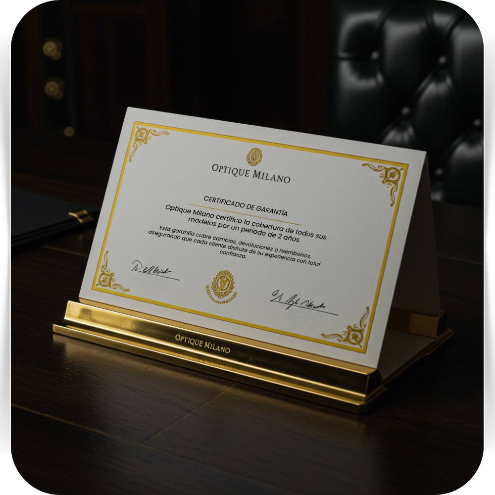En Optique Milano, tu tranquilidad es prioridad: cualquier necesidad de cambio, devolución, reembolso o sustitución por otro modelo del mismo valor será atendida con agilidad y total seguridad por nuestro equipo dedicado. Todos estos procesos están garantizados por hasta